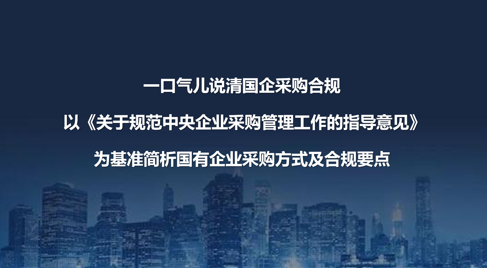 一口氣兒說(shuō)清國(guó)企采購(gòu)合規(guī) | 以《關(guān)于規(guī)范中央企業(yè)采購(gòu)管理工作的指導(dǎo)意見(jiàn)》為基準(zhǔn)簡(jiǎn)析國(guó)有企業(yè)采購(gòu)方式及合規(guī)要點(diǎn)