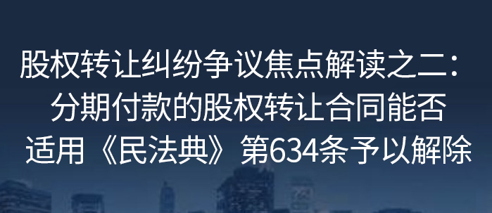 股權(quán)轉(zhuǎn)讓糾紛爭議焦點解讀之二:分期付款的股權(quán)轉(zhuǎn)讓合同能否適用《民法典》第634條予以解除