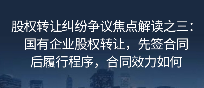股權(quán)轉(zhuǎn)讓糾紛爭議焦點解讀之三:國有企業(yè)股權(quán)轉(zhuǎn)讓,先簽合同后履行程序,合同效力如何