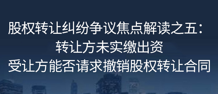 股權(quán)轉(zhuǎn)讓糾紛爭議焦點解讀之五:轉(zhuǎn)讓方未實繳出資,受讓方能否請求撤銷股權(quán)轉(zhuǎn)讓合同