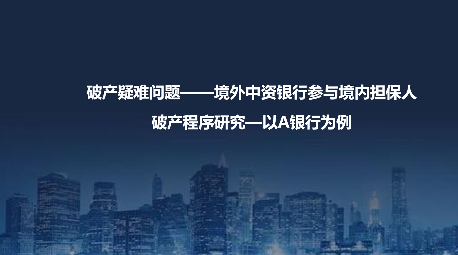破產(chǎn)疑難問題——境外中資銀行參與境內(nèi)擔(dān)保人破產(chǎn)程序研究—以A銀行為例