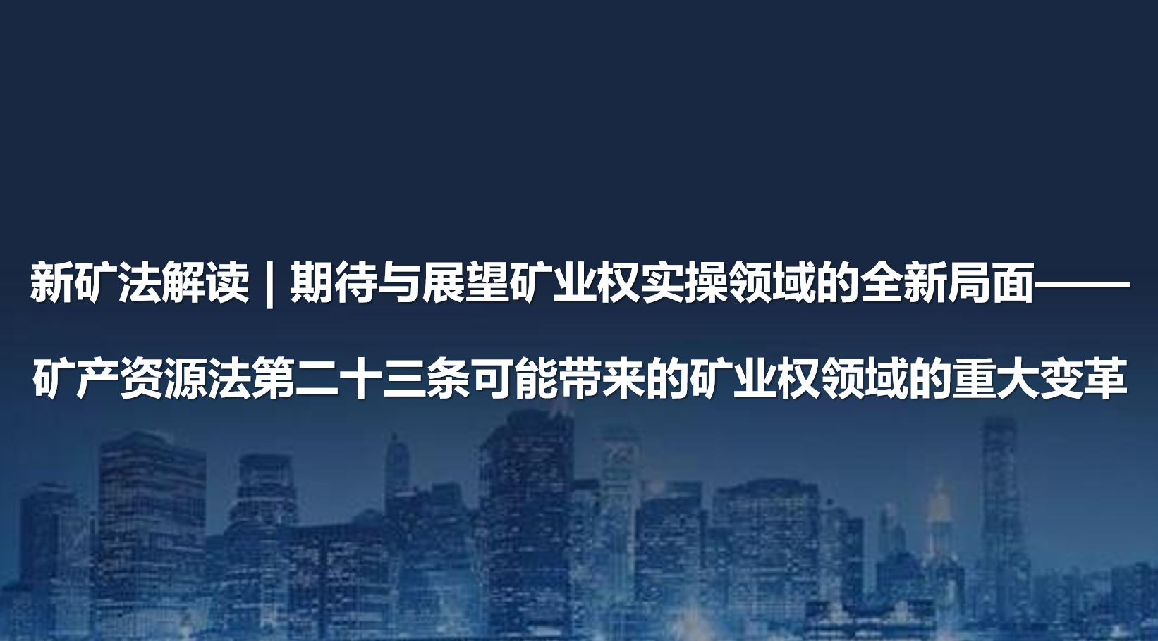 新礦法解讀 | 期待與展望礦業(yè)權實操領域的全新局面——礦產資源法第二十三條可能帶來的礦業(yè)權領域的重大變革