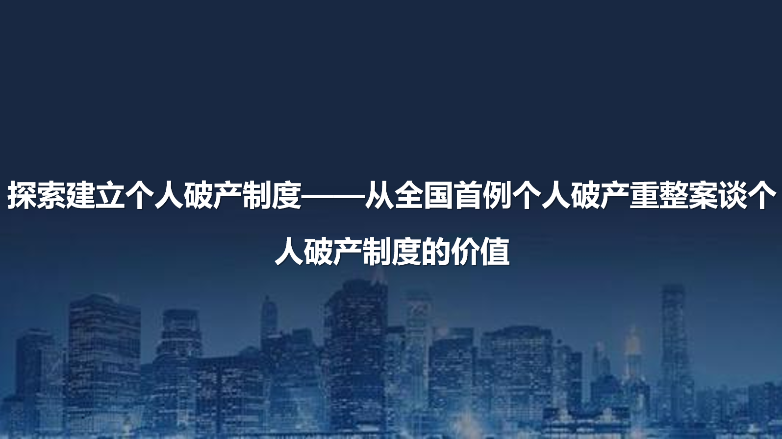探索建立個人破產(chǎn)制度——從全國首例個人破產(chǎn)重整案談個人破產(chǎn)制度的價值
