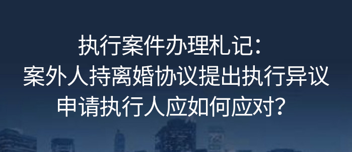執(zhí)行案件辦理札記:案外人持離婚協(xié)議提出執(zhí)行異議,申請(qǐng)執(zhí)行人應(yīng)如何應(yīng)對(duì)?