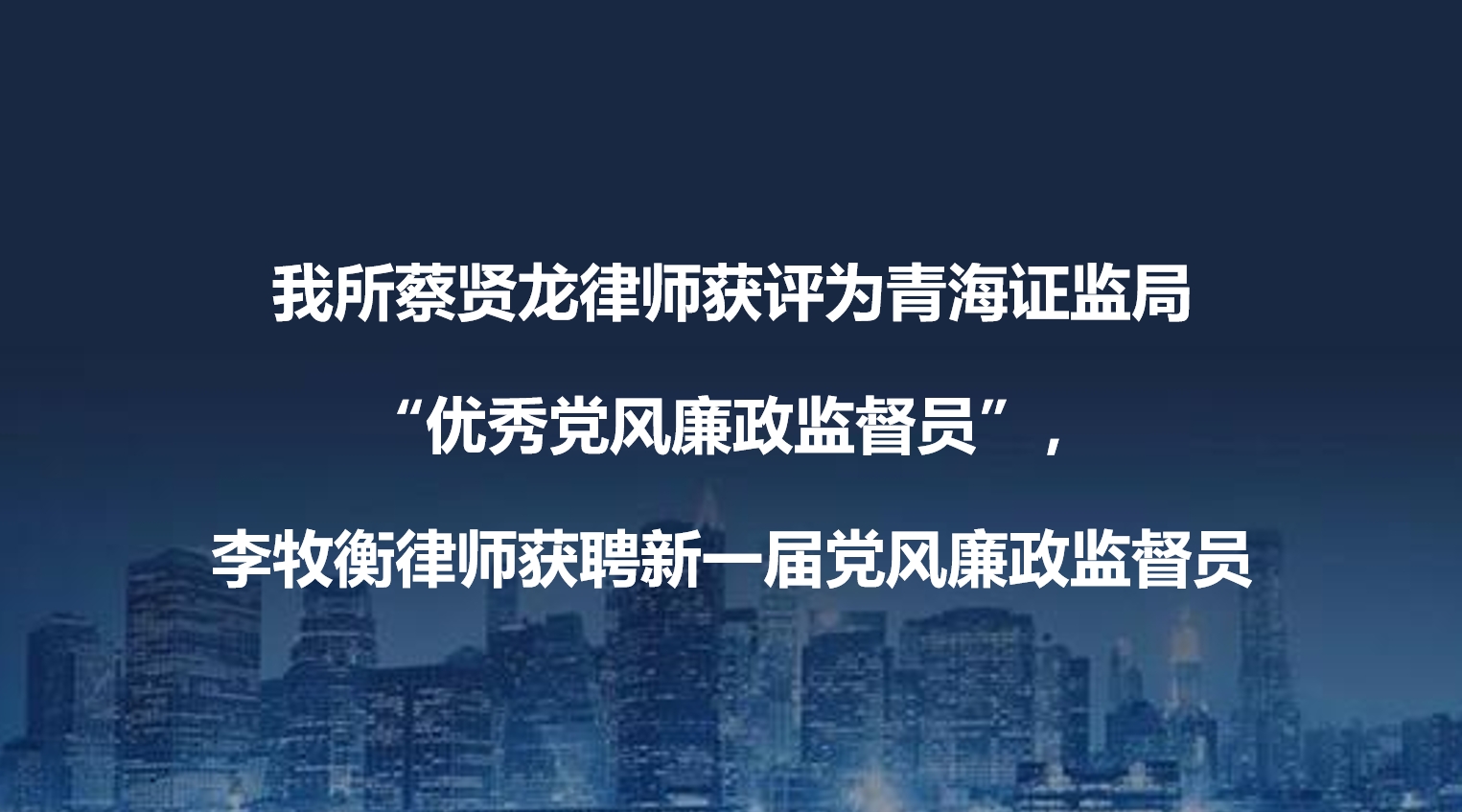 我所蔡賢龍律師獲評為青海證監(jiān)局“優(yōu)秀黨風廉政監(jiān)督員”,李牧衡律師獲聘新一屆黨風廉政監(jiān)督員