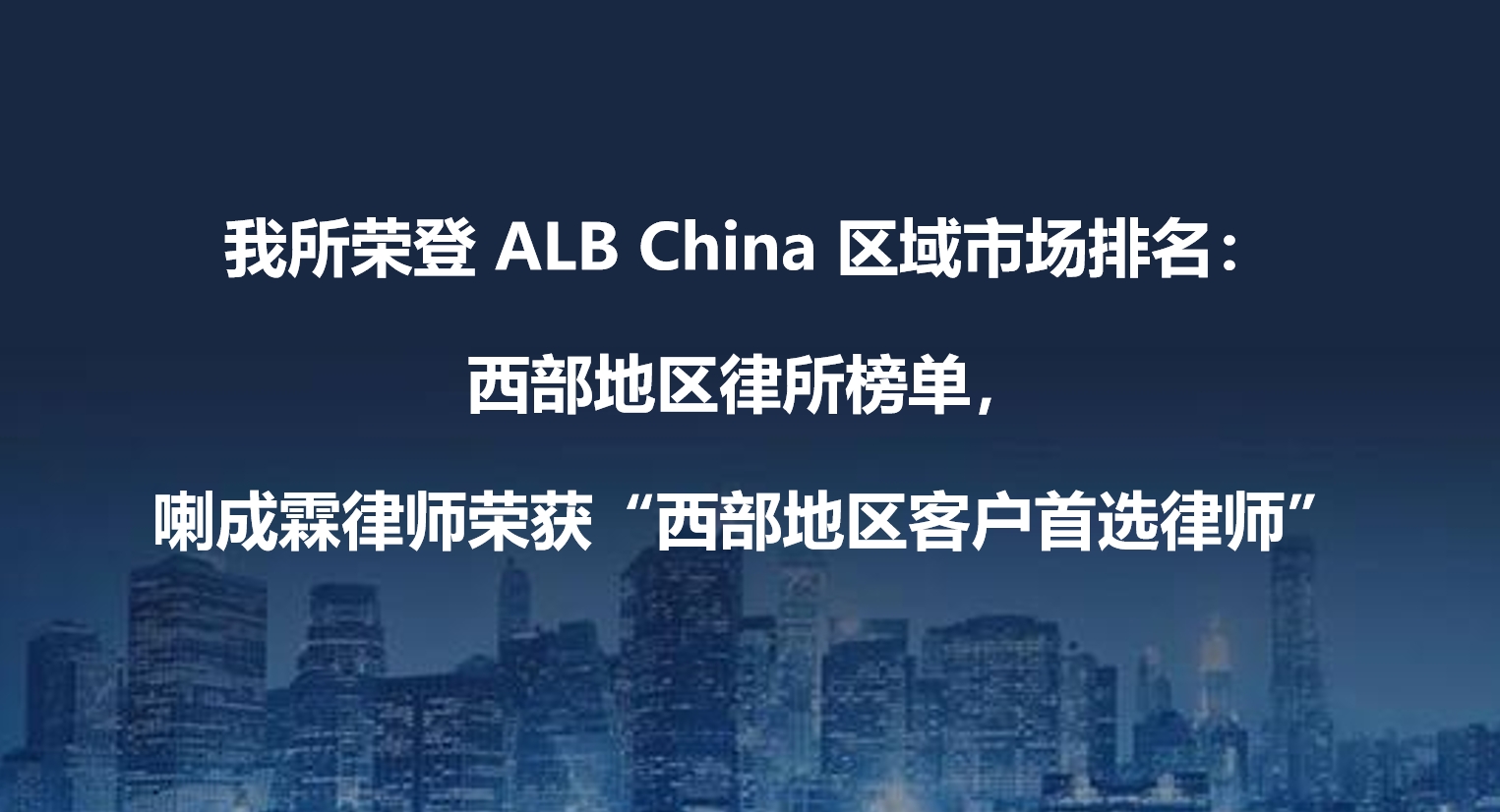 樹人榮譽 | 我所榮登 ALB China 區(qū)域市場排名:西部地區(qū)律所榜單,喇成霖律師榮獲“西部地區(qū)客戶首選律師”