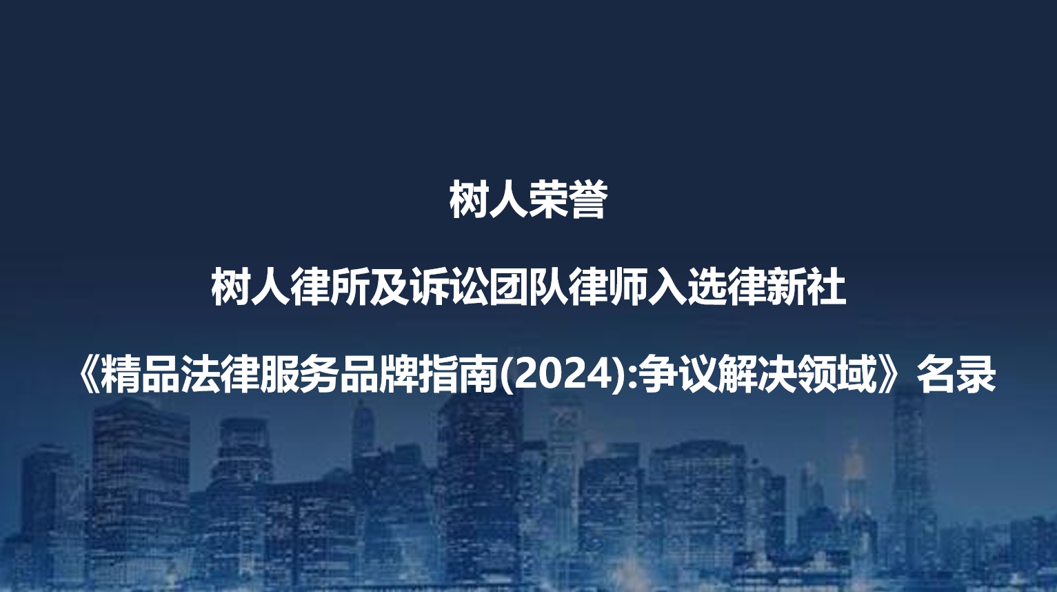 樹人榮譽|樹人律所及訴訟團隊律師入選律新社《精品法律服務品牌指南(2024):爭議解決領域》名錄