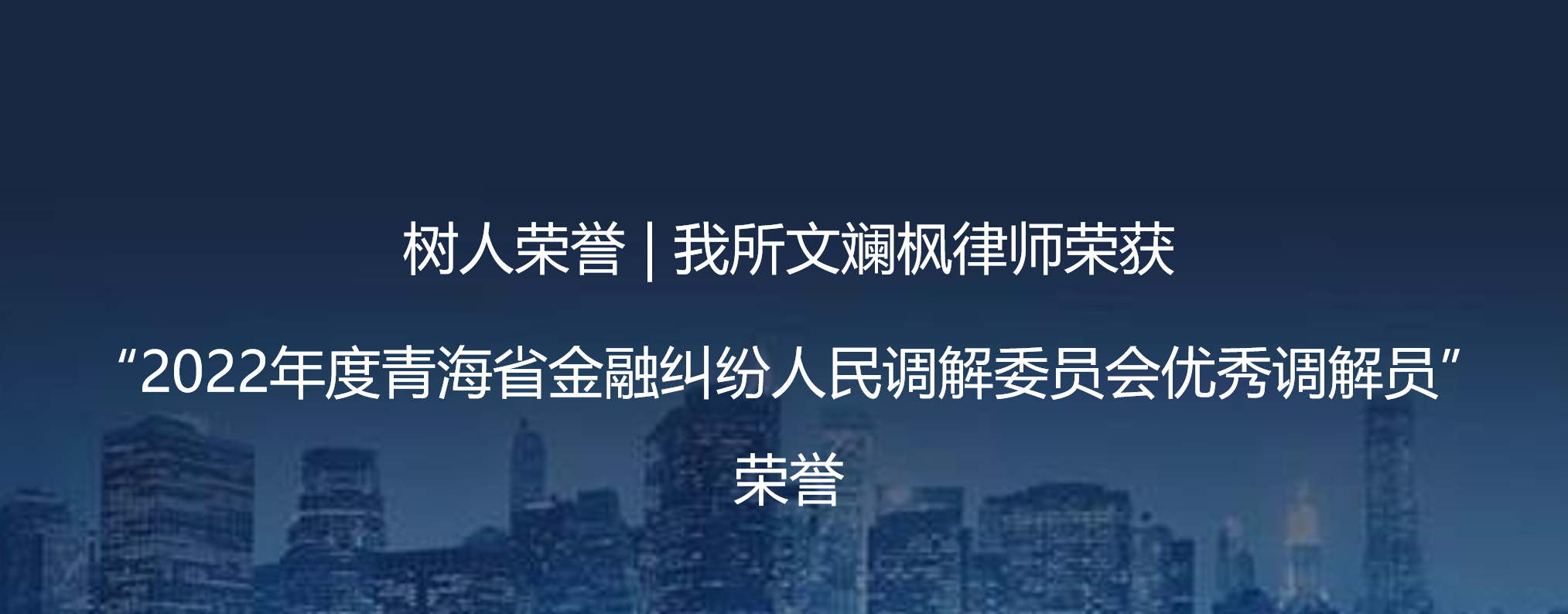 樹人榮譽 | 我所文斕楓律師榮獲“2022年度青海省金融糾紛人民調解委員會優(yōu)秀調解員”榮譽