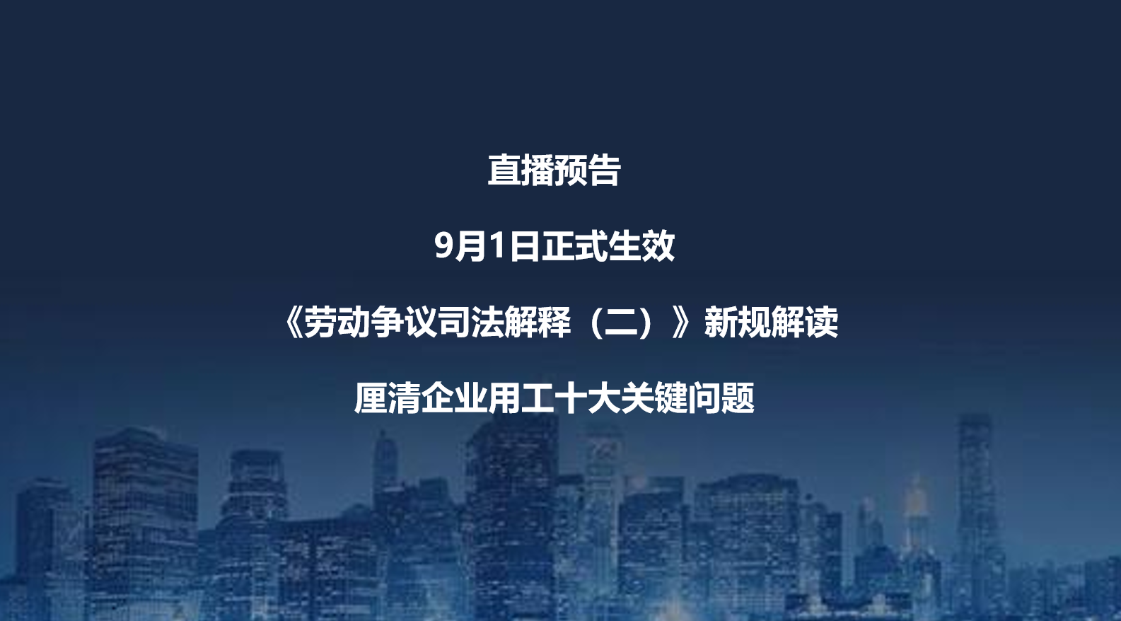 直播預(yù)告丨9月1日正式生效,《勞動(dòng)爭(zhēng)議司法解釋(二)》新規(guī)解讀,厘清企業(yè)用工十大關(guān)鍵問(wèn)題