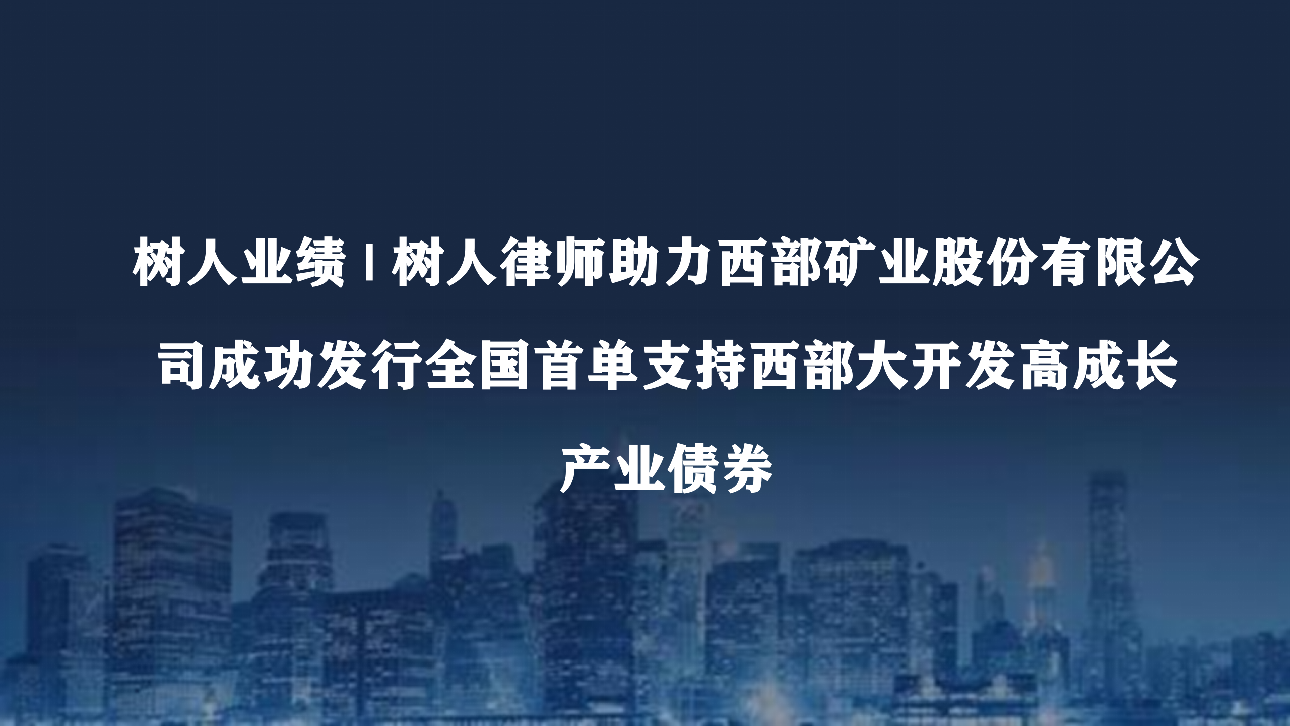 樹人業(yè)績(jī) | 樹人律師助力西部礦業(yè)股份有限公司成功發(fā)行全國(guó)首單支持西部大開發(fā)高成長(zhǎng)產(chǎn)業(yè)債券