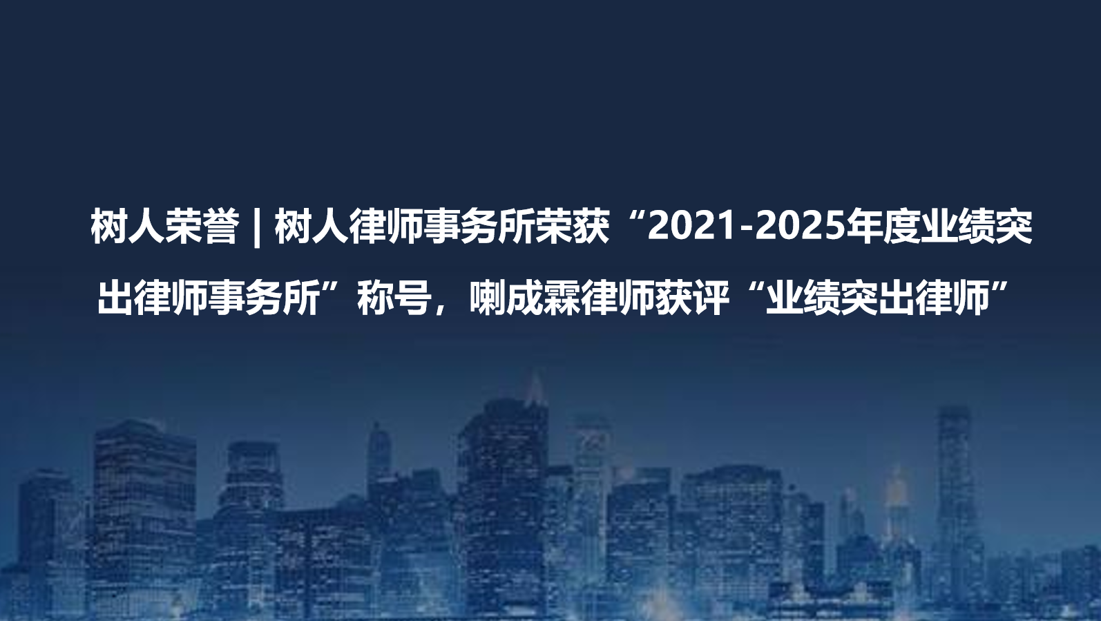 樹人榮譽(yù) | 樹人律師事務(wù)所榮獲“2021-2025年度業(yè)績(jī)突出律師事務(wù)所”稱號(hào),喇成霖律師獲評(píng)“業(yè)績(jī)突出律師”