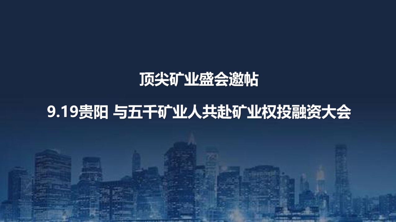 頂尖礦業(yè)盛會邀帖丨9.19貴陽 與五千礦業(yè)人共赴礦業(yè)權投融資大會