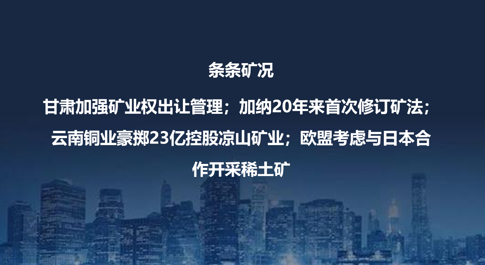 條條礦況|甘肅加強礦業(yè)權出讓管理;加納20年來首次修訂礦法;云南銅業(yè)豪擲23億控股涼山礦業(yè);歐盟考慮與日本合作開采稀土礦