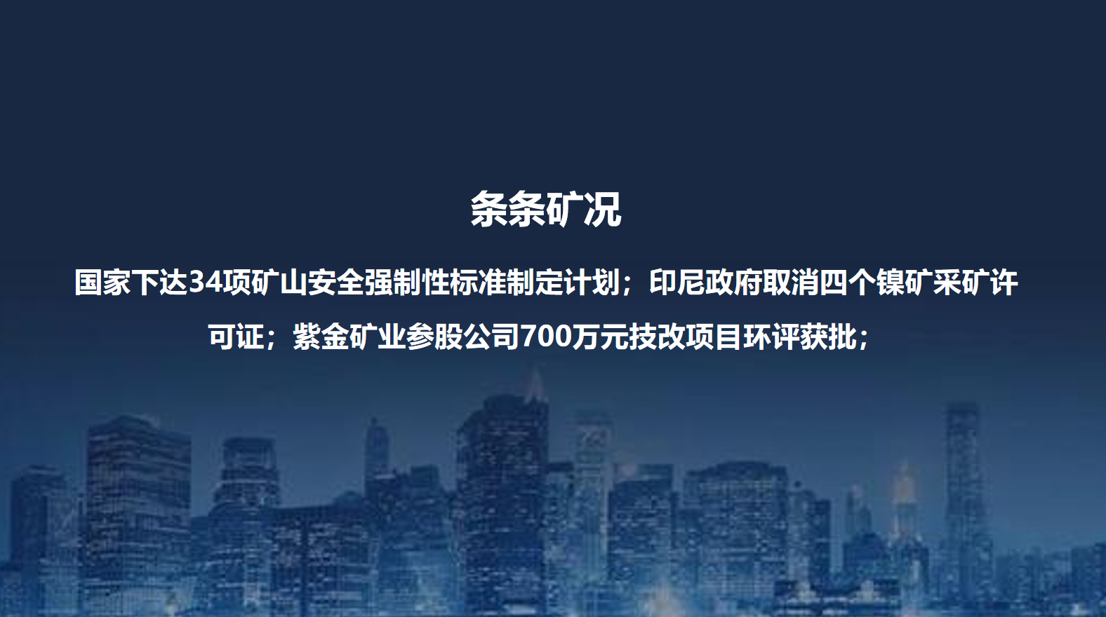 條條礦況|國家下達34項礦山安全強制性標準制定計劃;印尼政府取消四個鎳礦采礦許可證;紫金礦業(yè)參股公司700萬元技改項目環(huán)評獲批;