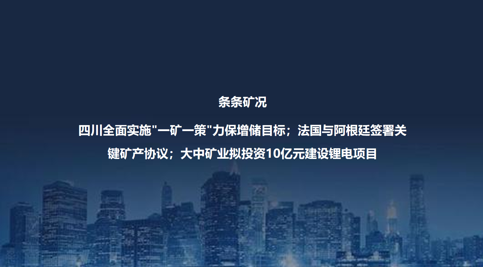 條條礦況|四川全面實施"一礦一策"力保增儲目標;法國與阿根廷簽署關鍵礦產(chǎn)協(xié)議;大中礦業(yè)擬投資10億元建設鋰電項目