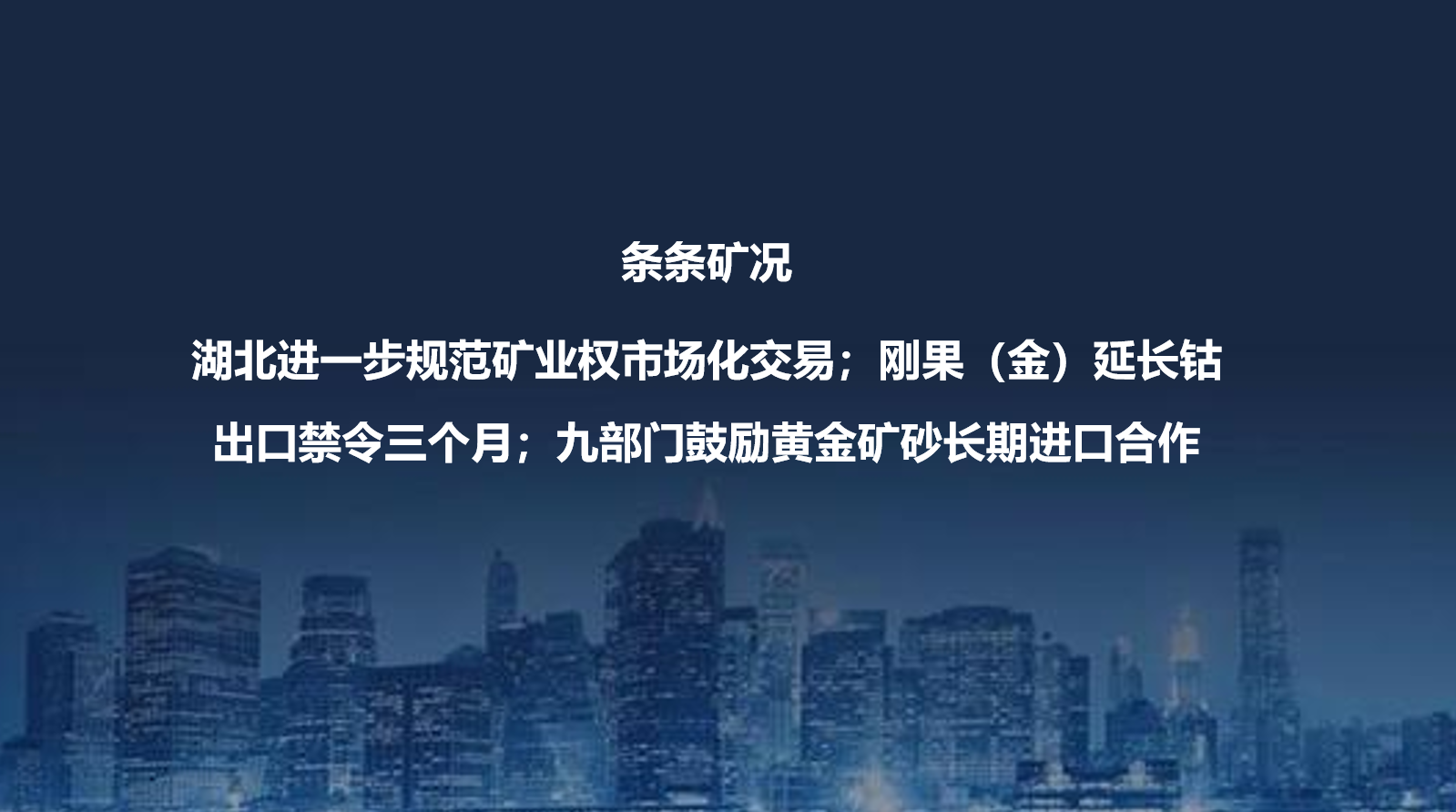 條條礦況|湖北進一步規(guī)范礦業(yè)權(quán)市場化交易;剛果(金)延長鈷出口禁令三個月;九部門鼓勵黃金礦砂長期進口合作