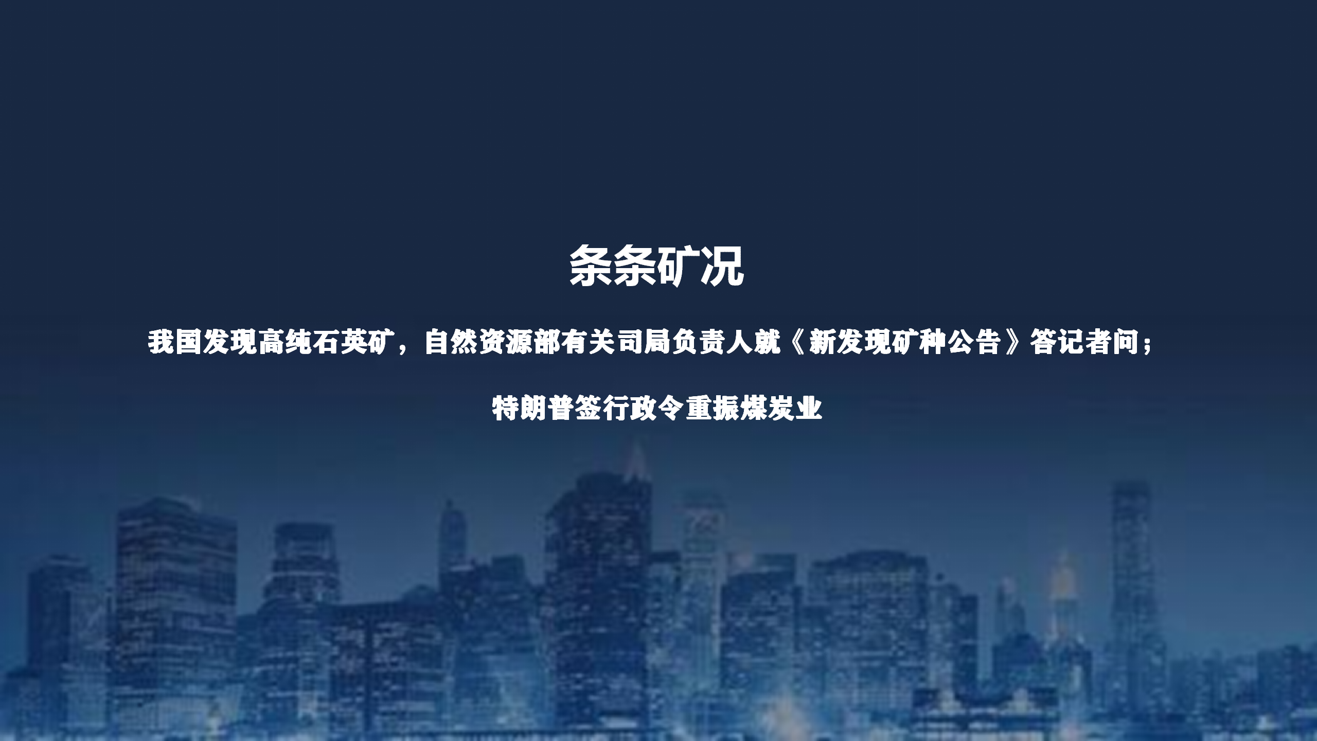 條條礦況|我國發(fā)現(xiàn)高純石英礦,自然資源部有關(guān)司局負責(zé)人就《新發(fā)現(xiàn)礦種公告》答記者問;特朗普簽行政令重振煤炭業(yè)