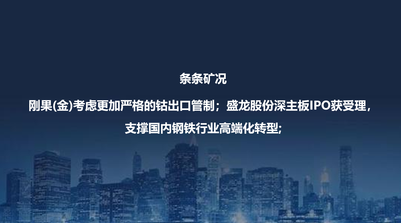 條條礦況|剛果(金)考慮更加嚴格的鈷出口管制;盛龍股份深主板IPO獲受理,支撐國內(nèi)鋼鐵行業(yè)高端化轉(zhuǎn)型;