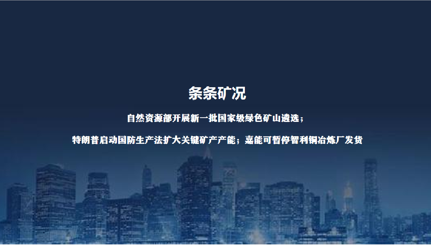條條礦況|自然資源部開展新一批國家級綠色礦山遴選;特朗普啟動國防生產(chǎn)法擴大關鍵礦產(chǎn)產(chǎn)能;嘉能可暫停智利銅冶煉廠發(fā)貨
