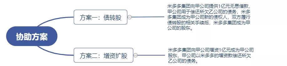 甲公司欠乙公司人民幣1億元,甲公司因現(xiàn)金流緊張,無(wú)法按期償還,向米多多集團(tuán)(米多多集團(tuán)為非金融機(jī)構(gòu)、增值稅一般納稅人,且與甲、乙無(wú)關(guān)聯(lián)關(guān)系)尋求幫助,米多多集團(tuán)高層領(lǐng)導(dǎo)經(jīng)討論,形成了以下兩種協(xié)助方案: