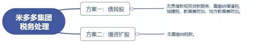 在不考慮其他商業(yè)目的的前提下,我們僅討論上述兩種方案中米多多集團(tuán)的稅務(wù)處理。