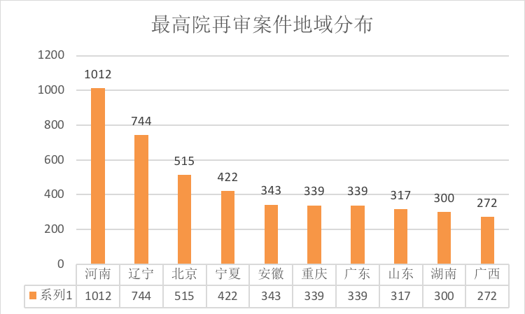 通過對(duì)本報(bào)告選取的最高人民法院(以下簡(jiǎn)稱“最高院”)2019年再審的8914份裁判文書進(jìn)行分析,從案件當(dāng)事人住所地的分布看,排在前十位的地區(qū)分別為河南、遼寧、北京、寧夏、安徽、重慶、廣東、山東、湖南、廣西。