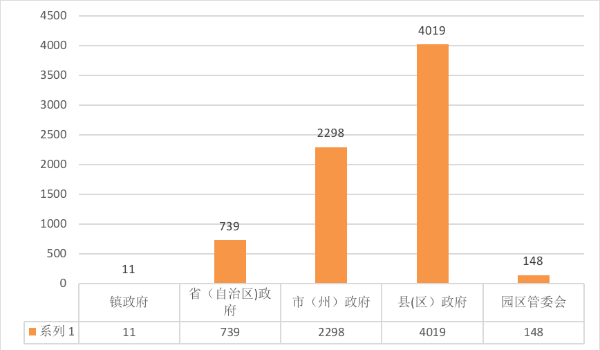 通過分析,被訴各級(jí)政府中,根據(jù)被訴頻率的高低,排序依次為:縣(區(qū))政府、市(州)政府、?。ㄗ灾螀^(qū))政府、鎮(zhèn)政府、園區(qū)管委會(huì)。其中,縣(區(qū))政府為被申請(qǐng)人的裁判文書共計(jì)4019份,占比為55.70%;市(州)政府為被申請(qǐng)人的裁判文書共計(jì)2298份,占比為31.85%;省(自治區(qū))政府為被申請(qǐng)人的裁判文書共計(jì)739份,占比為10.24%;園區(qū)管委會(huì)為被申請(qǐng)人的裁判文書共計(jì)148份,占比為2.05%;鄉(xiāng)鎮(zhèn)政府作為被申請(qǐng)人的裁判文書共計(jì)11份,占比為0.15%。