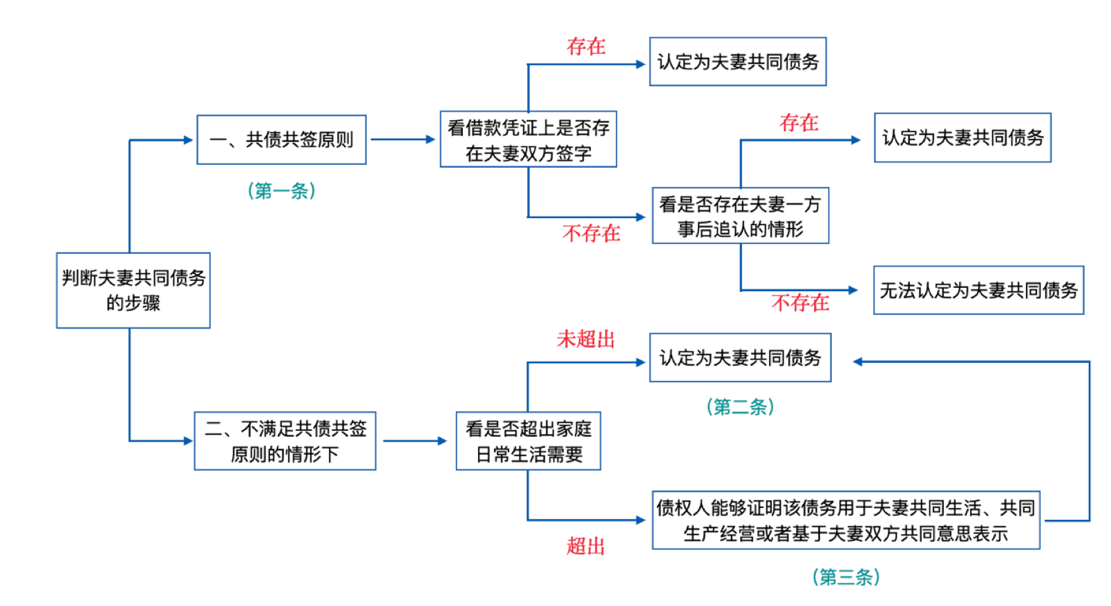 根據(jù)上述流程圖可知,判斷是否屬于夫妻共同債務(wù)只需要兩步: