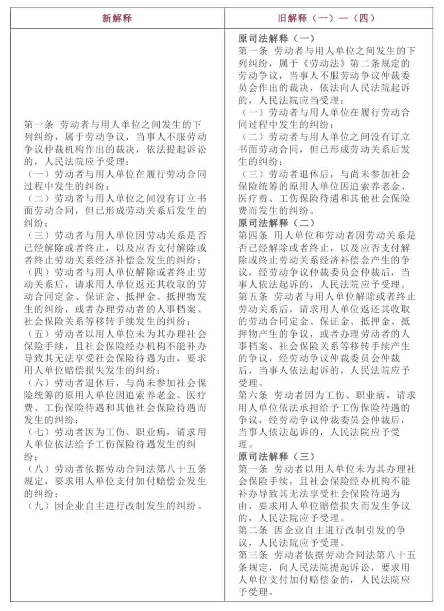同日,最高人民法院正式公布《關(guān)于審理勞動爭議案件適用法律問題的解釋(一)》(以下簡稱“新解釋”),成為人民法院審理勞動爭議案件的“新準(zhǔn)繩”。