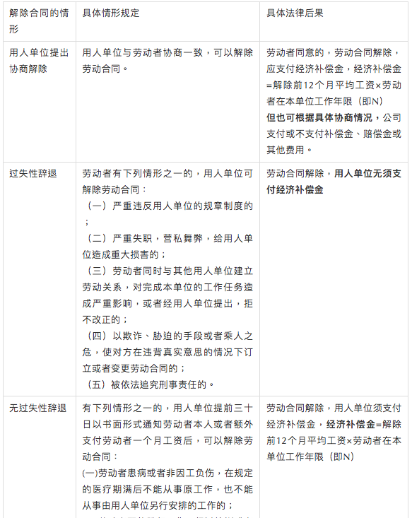 用人單位解除勞動合同的情形及后果