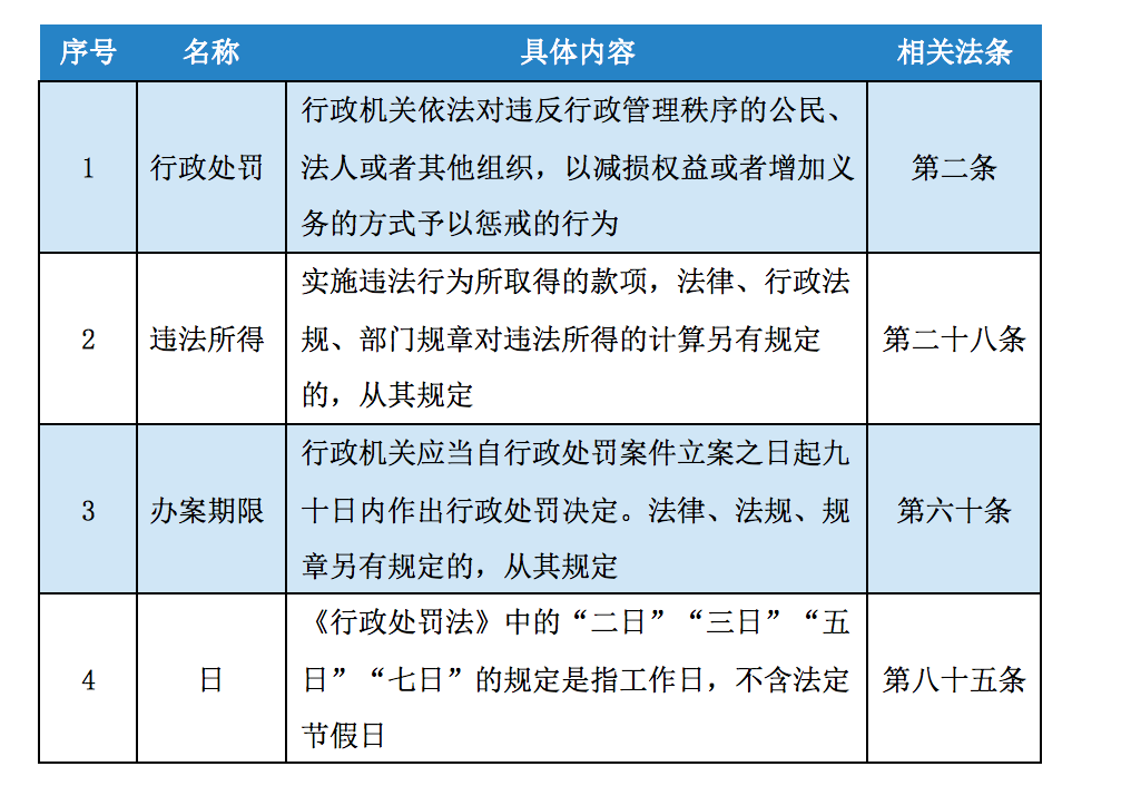 與舊《行政處罰法》相比,新《行政處罰法》對原有行政處罰實施中的“行政處罰”“違法所得”“辦案期限”以及“日”的定義作出了明確規(guī)定。這將進(jìn)一步利于行政執(zhí)法機(jī)關(guān)查處違法行為,對當(dāng)事人的違法行為實施行政處罰。