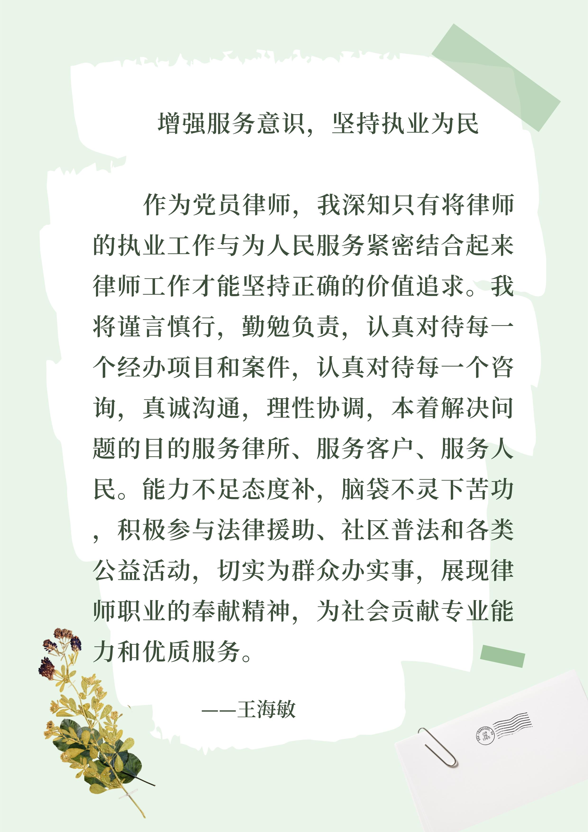 此次主題征文活動,是樹人所黨支部在鞏固黨史學習教育成果中的一項重要工作內(nèi)容,征文中不僅表達了律師聽黨話、感黨恩、跟黨走得真摯感情和共同心聲,各位律師結合自身工作,服務對象及執(zhí)業(yè)案例將習近平法治思想轉(zhuǎn)化為建設社會主義法治國家、做新時代律師工作的動力,真正做到落地有聲,落地有效。