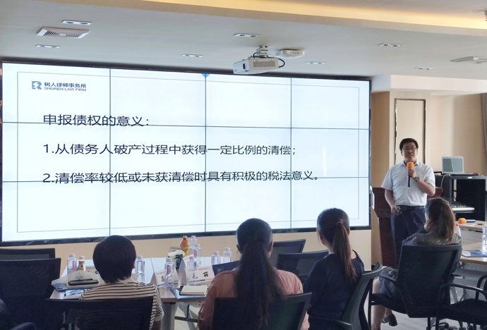 樹人律師事務(wù)所合伙人、并購部負(fù)責(zé)人馬青虎律師與并購部主辦律師李曉璐以《從破產(chǎn)視角看企業(yè)應(yīng)收賬款管理》為主題,分別介紹了企業(yè)破產(chǎn)與破產(chǎn)企業(yè)稅收問題、企業(yè)應(yīng)收賬款管理問題及方法,指導(dǎo)企業(yè)在面對(duì)破產(chǎn)情況下,規(guī)范處理稅收與債權(quán)債務(wù)問題。