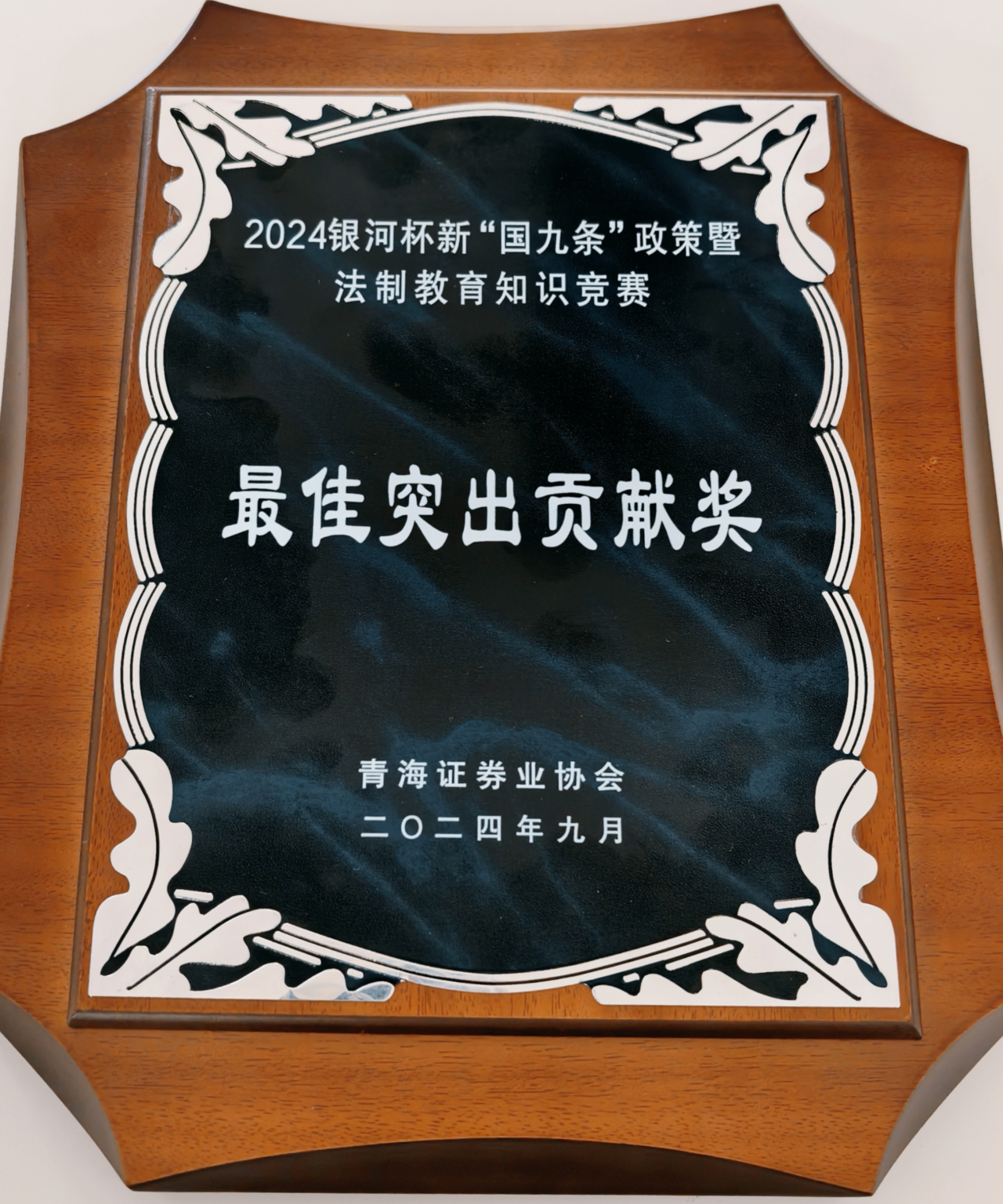 9月25日,在青海證監(jiān)局的指導(dǎo)下,青海證券業(yè)協(xié)會(huì)聯(lián)合中國(guó)銀河證券股份有限公司青海分公司成功舉辦“金融強(qiáng)國(guó) 智聚青海”——2024銀河杯新“國(guó)九條”政策暨法制教育知識(shí)競(jìng)賽,青海樹人律師事務(wù)所榮獲最佳突出貢獻(xiàn)獎(jiǎng)。