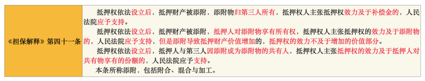 解析:抵押物并非固定永久存在,可能會被添附、征收。因此,當發(fā)生糾紛時,對于抵押權(quán)效力范圍的認定,將直接影響抵押物被處置后債權(quán)人優(yōu)先受償?shù)膬r款數(shù)額。