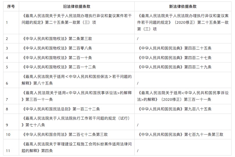 裁判引用法律依據(jù)及新舊對(duì)照表