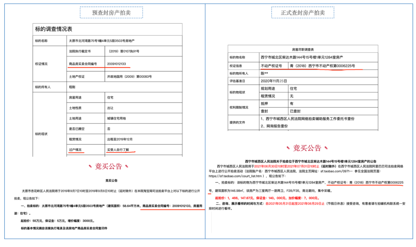 第一,雖然預(yù)查封的房產(chǎn)拍賣不會像正式查封的房產(chǎn)一樣在拍賣公告中載明不動產(chǎn)權(quán)證號,但是可以在拍賣公告中載明商品房買賣合同編號。