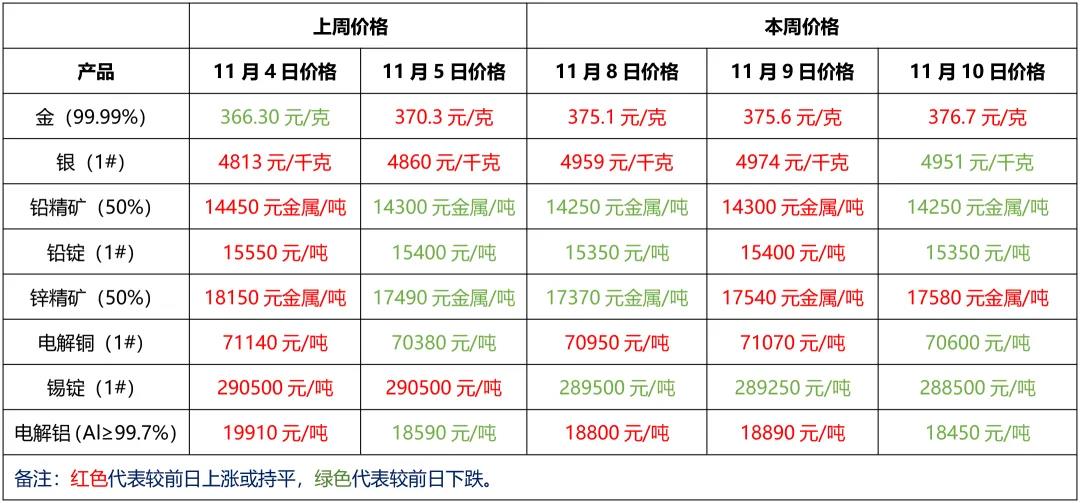 金、銀、鉛、鋅、銅、鋁等主要金屬本周報(bào)價(jià)