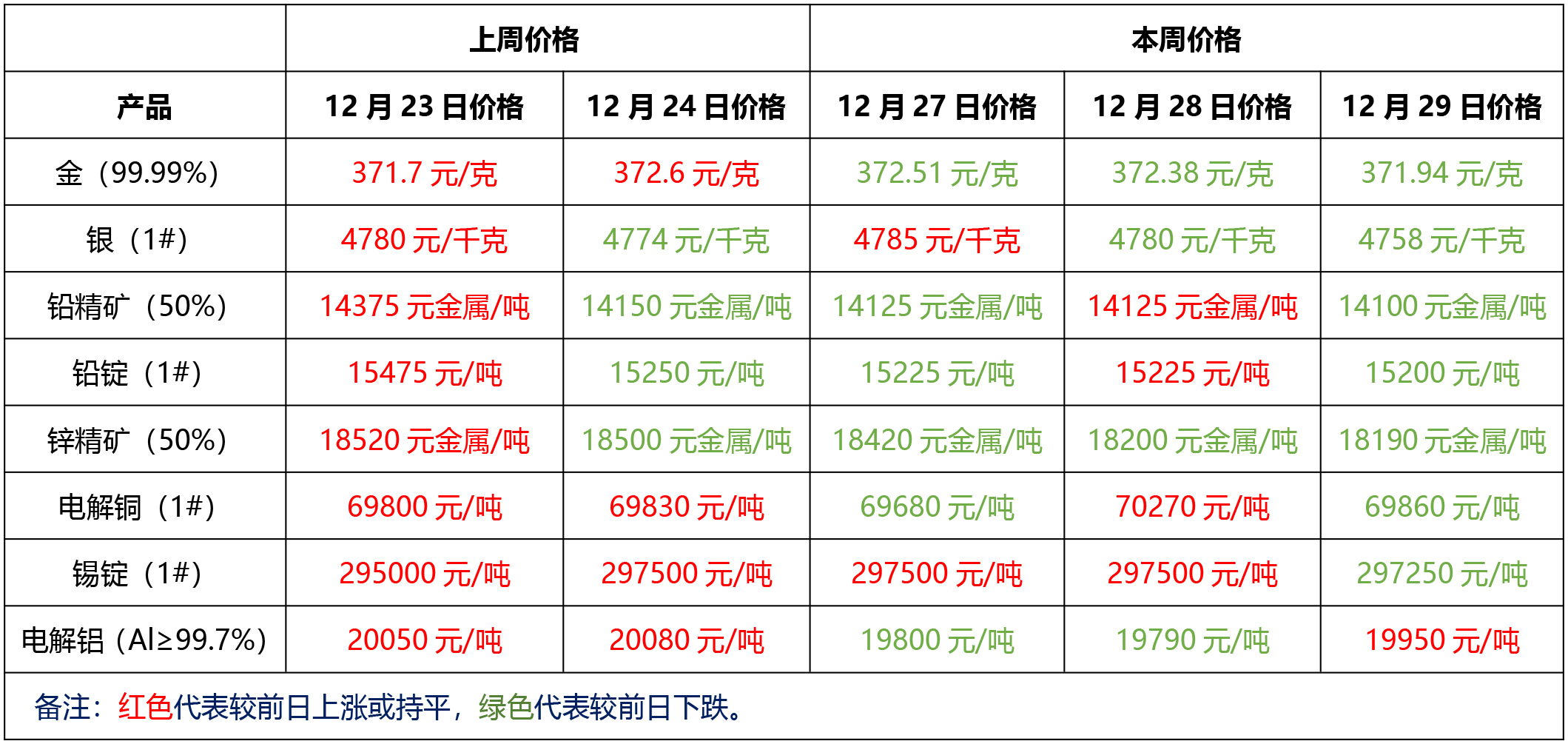 金、銀、鉛、鋅、銅、鋁等主要金屬本周報(bào)價(jià)