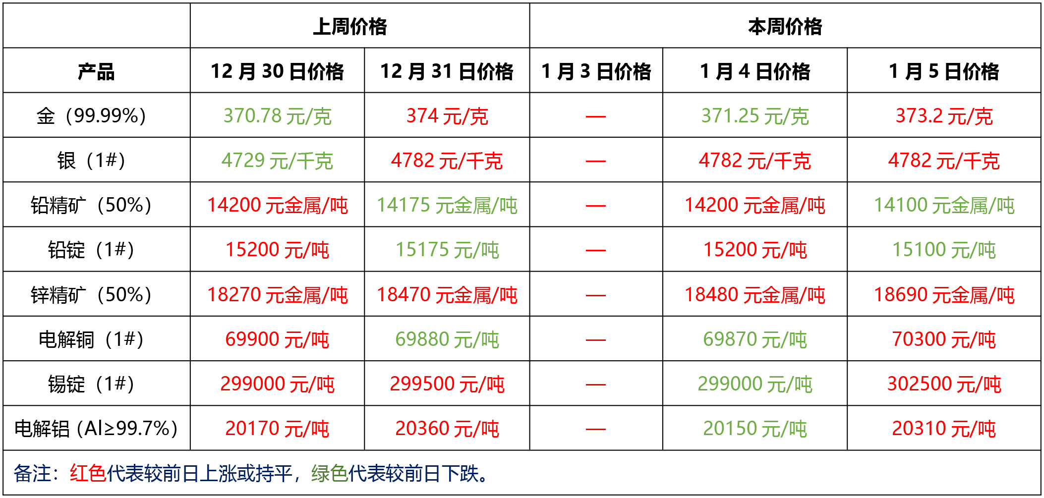 金、銀、鉛、鋅、銅、鋁等主要金屬本周報(bào)價