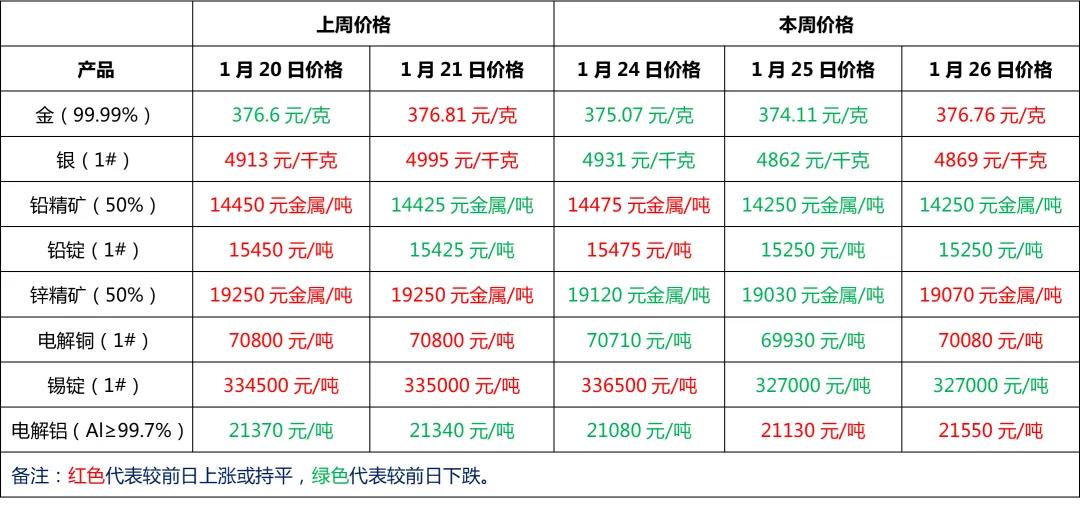 金、銀、鉛、鋅、銅、鋁等主要金屬本周報(bào)價(jià)