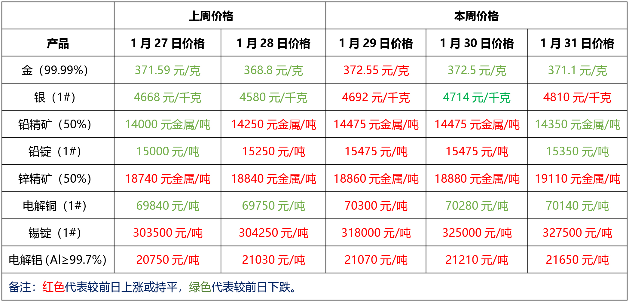 金、銀、鉛、鋅、銅、鋁等主要金屬本周報(bào)價(jià)