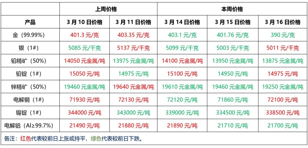 金、銀、鉛、鋅、銅、鋁等主要金屬本周報(bào)價(jià)