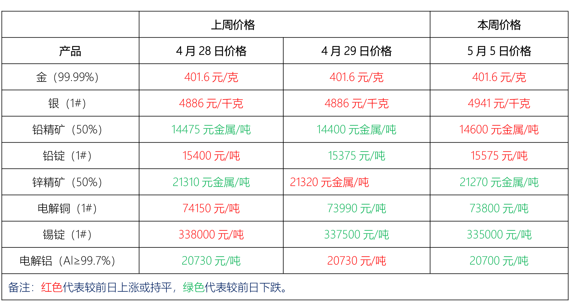 金、銀、鉛、鋅、銅、鋁等主要金屬本周報(bào)價(jià)