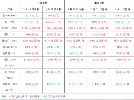 下表為本周金、銀、鉛、鋅、銅、鋁等主要有色金屬礦產(chǎn)品價格變動情況: