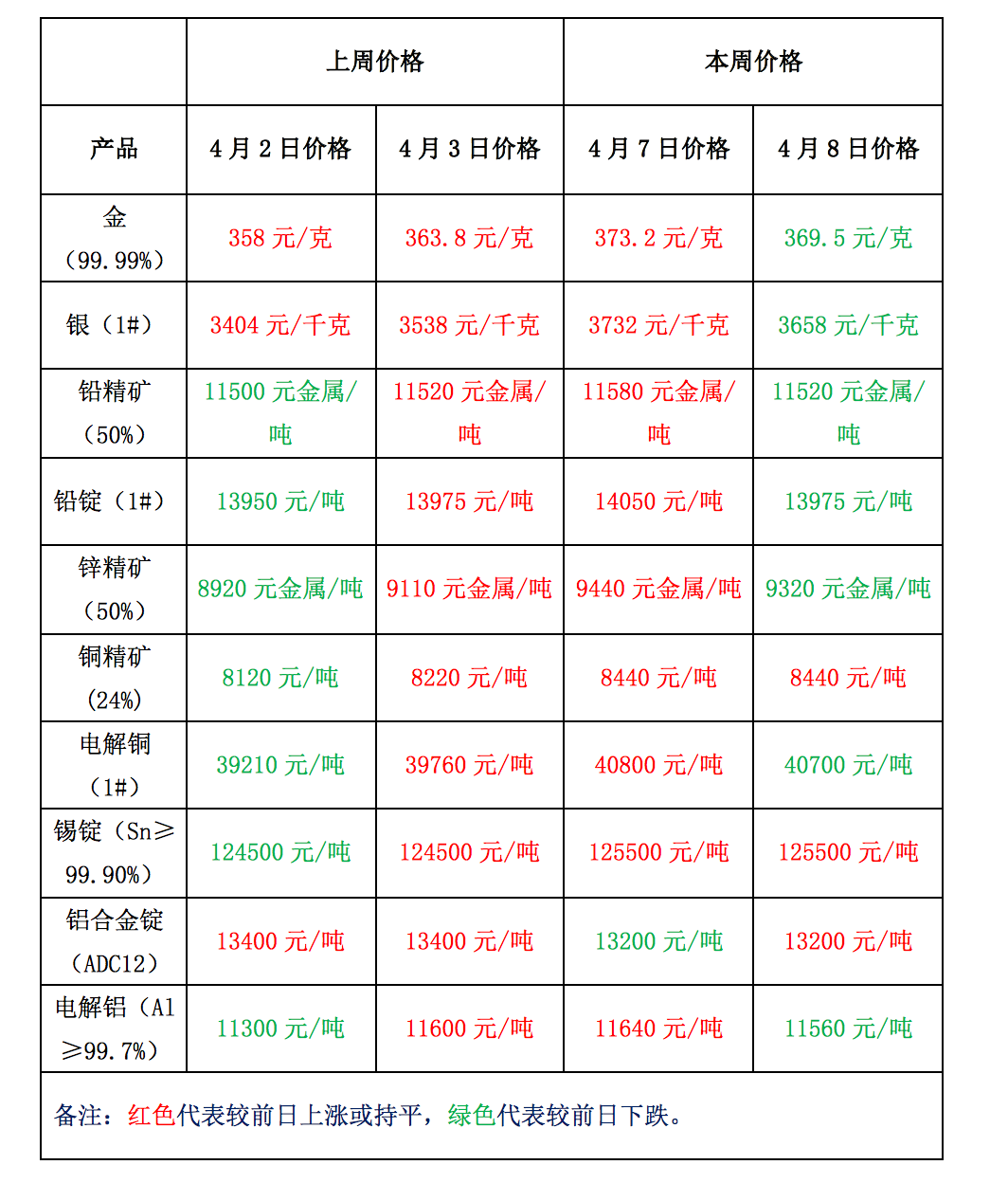 下表為本周金、銀、鉛、鋅、銅、鋁等主要有色金屬礦產(chǎn)品價(jià)格變動(dòng)情況: