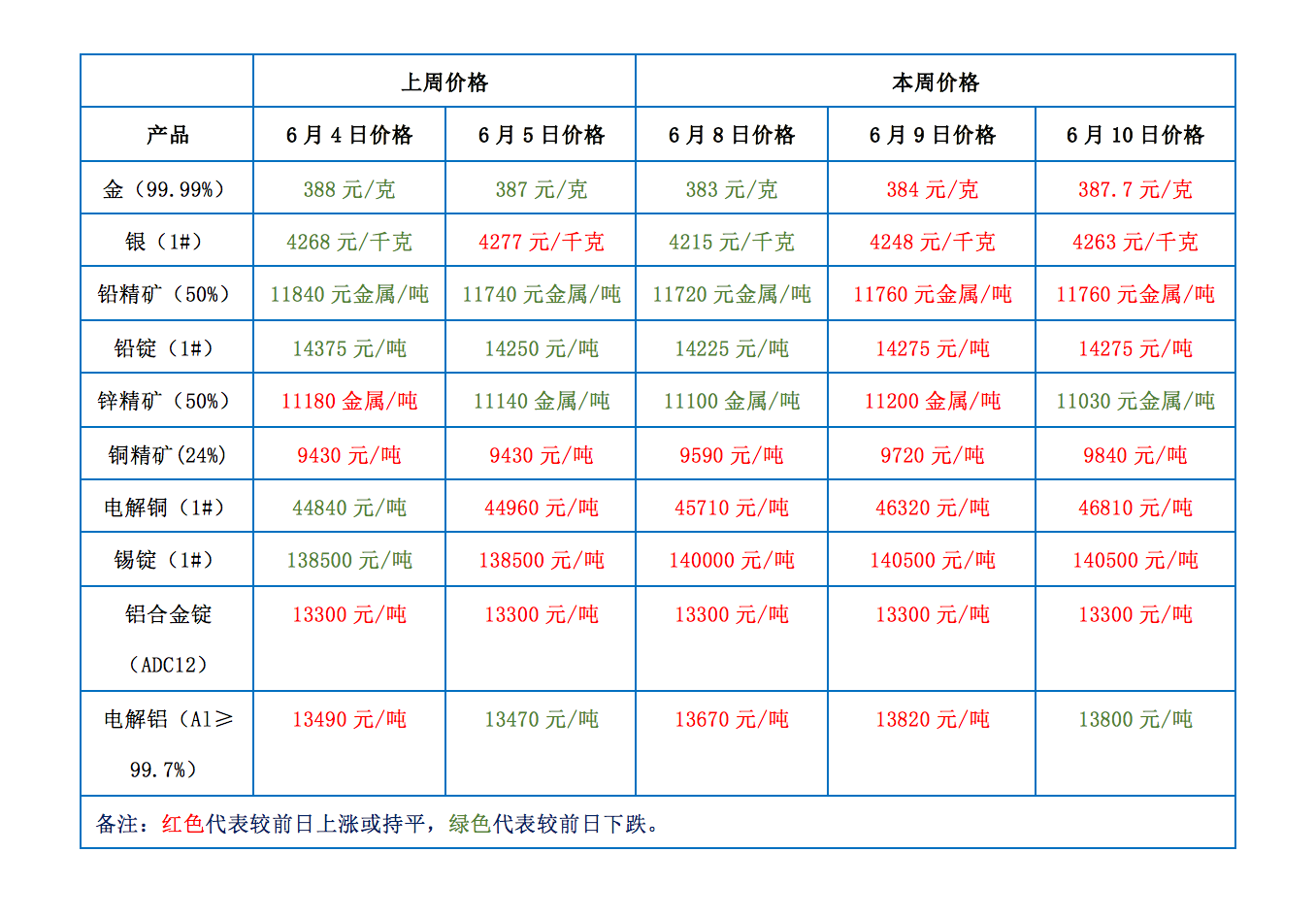 下表為本周金、銀、鉛、鋅、銅、鋁等主要有色金屬礦產(chǎn)品價(jià)格變動情況: