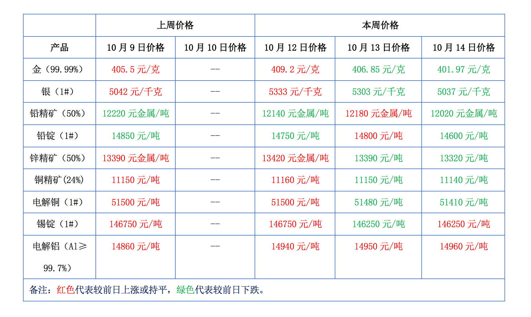 下表為本周金、銀、鉛、鋅、銅、鋁等主要有色金屬礦產(chǎn)品價格變動情況: