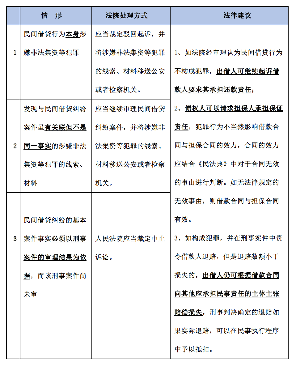 問(wèn)題四:在民間借貸刑民交叉的案件中,法院會(huì)如何處理,出借人應(yīng)如何保障債權(quán)?